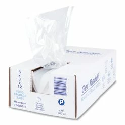 FDA approved food bags for sanitary storage. Easy one-at-a-time dispensing from clam shell carton. Crystal clear with a shiny gloss.