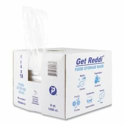 FDA approved food bags for sanitary storage. Easy one-at-a-time dispensing from clam shell carton. Crystal clear with a shiny gloss.