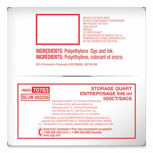 Sturdy, disposable bags are easy to open and easy to fill. Their unique interlocking zipper seals securely; locks in freshness and protects foods from drying. Designed for saving space while storing food, portion control, food preparations and transportation. You can write on the labels for easy identification and date coding. Dispensing cartons are color-coded for kitchen organization. Bags are microwave safe and manufactured to meet FDA requirements.